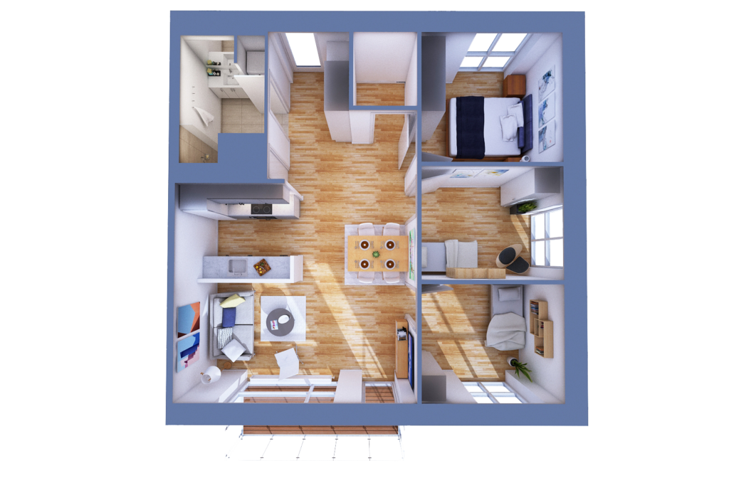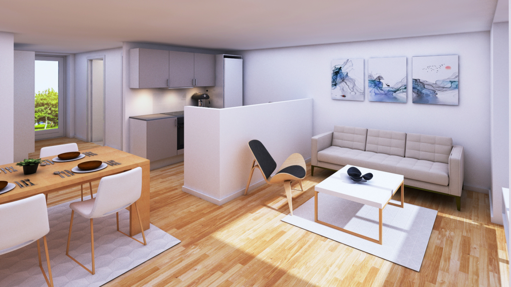 Få en unik boligoplevelse i vores moderne 3-værelses lejlighed. Det rummelige køkkenalrum imponerer med store vinduer, der giver en fantastisk naturlig belysning og en forfriskende atmosfære. Boligerne er 97-98 m2.